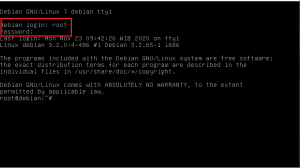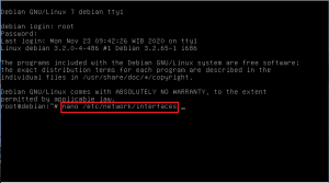 Pertama, so pasti install terlebih dahulu linux debian nya ya. Setelah itu login sebagai root. Tampilannya seperti berikut ini: